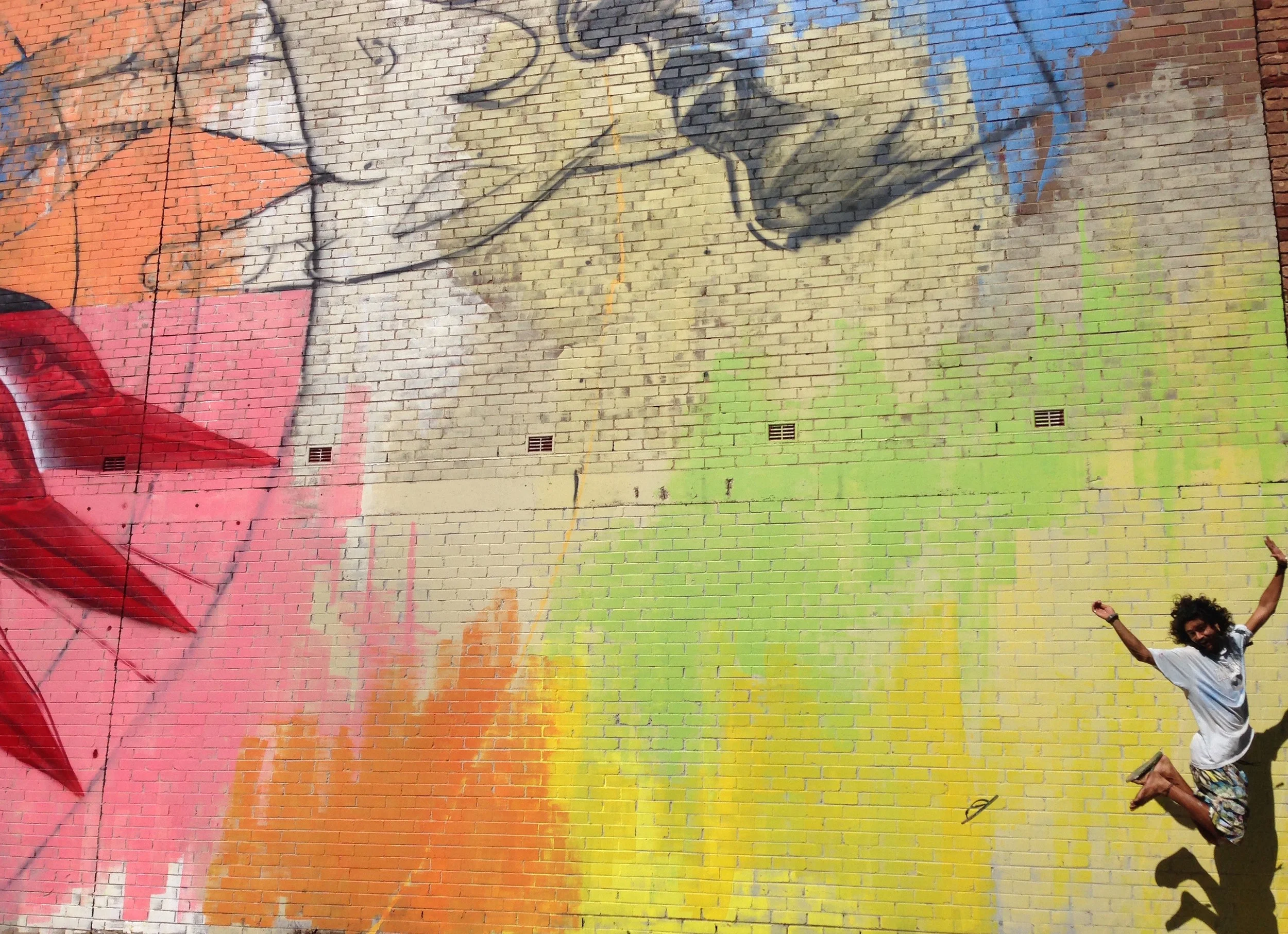 In January 2017, the inaugural Welcome Walls was a key feature in the Parramatta Australia Day celebrations which welcomed over 60,000 people who enjoyed 36 hours of art, culture and entertainment. Welcome Walls facilitated two interactive mural wall sites, led by artists Aroha Groves and Xander 'knoswet' Zee, that invited the public to engage and participate in the creation of a community mural. In the weeks following, 3 large scale walls in Parramatta's Church Street and Liverpool Girls School were completely transformed by striking mural design.