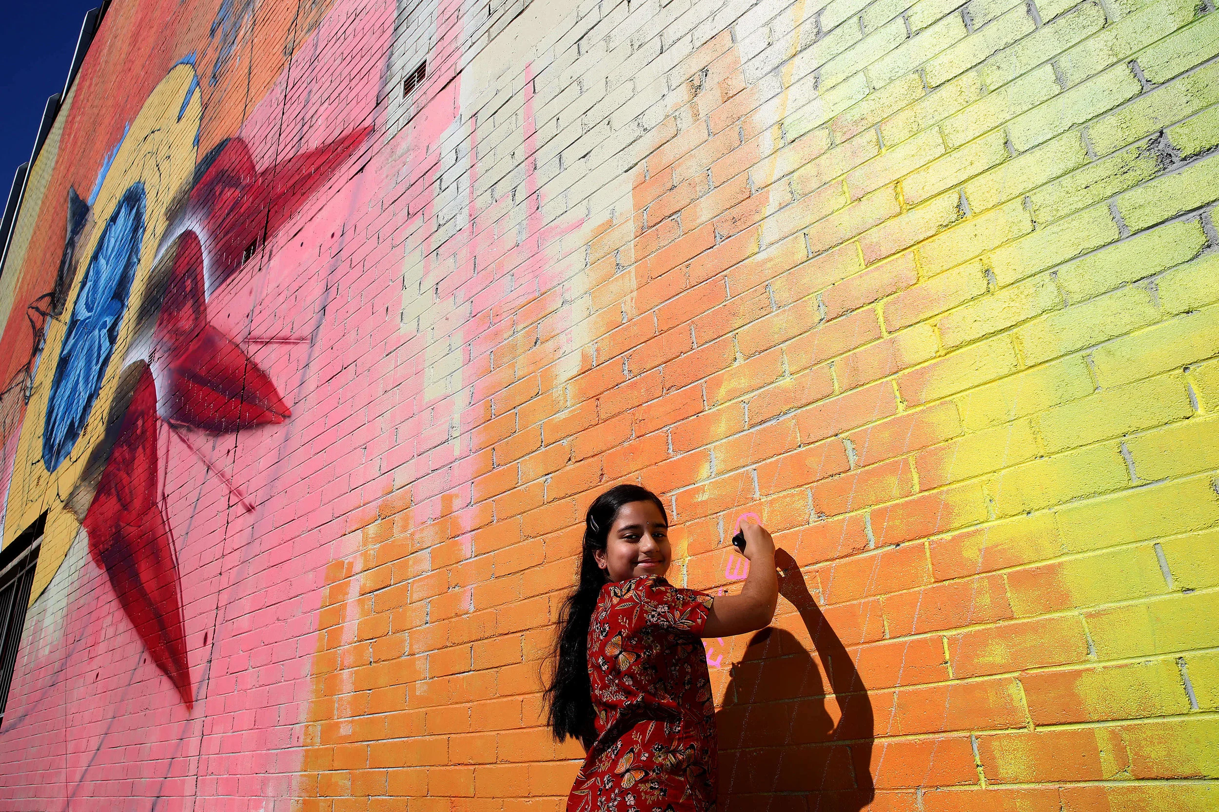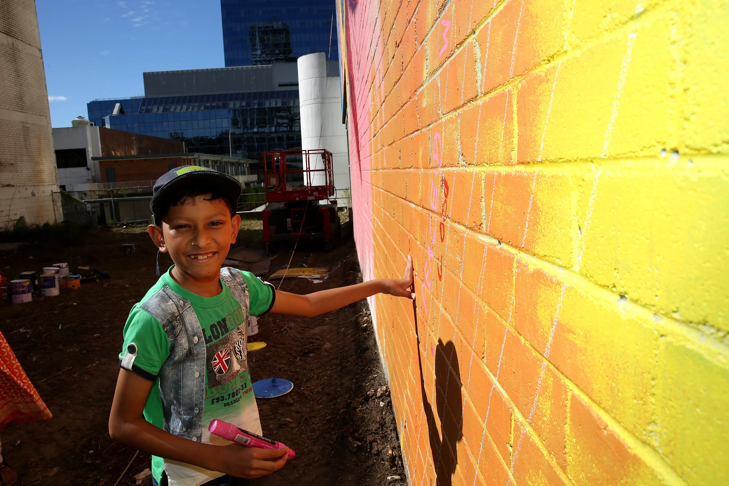 Welcome Walls is a public art festival in Greater Western Sydney celebrating diversity and multiculturalism. Public art pieces are co-designed with community members in a series of workshops alongside professional artists. The final designs are then painted on large scale walls around Greater Western Sydney bringing an explosion of colour and creativity to the streets.